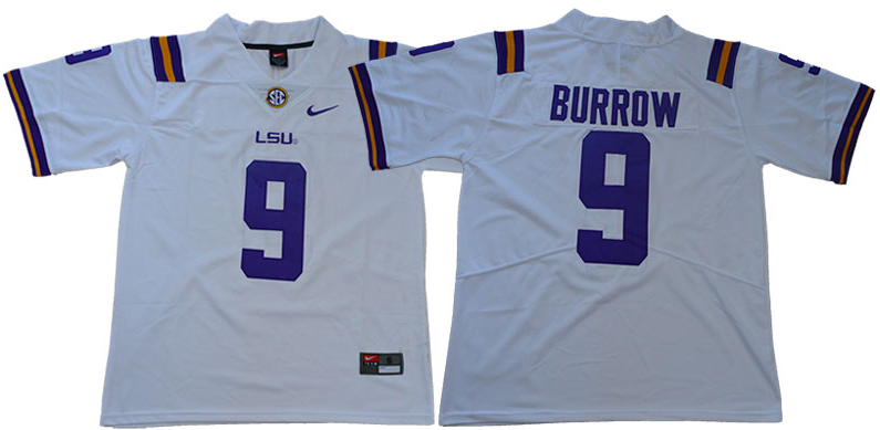 Men LSU Tigers #9 Burrow White NCAA Jersey