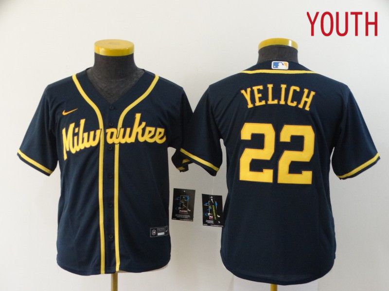 Youth Milwaukee Brewers #22 Yelich Blue Game Nike MLB Jerseys